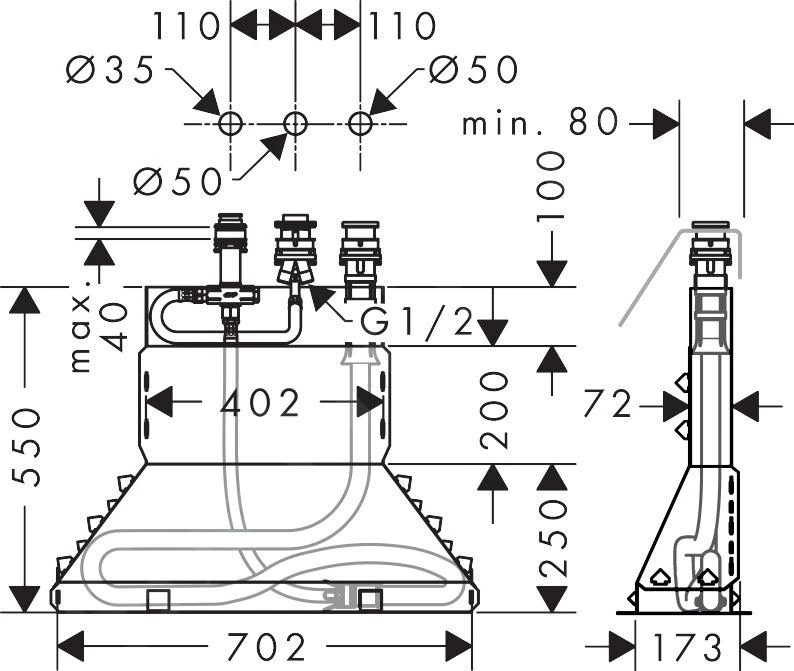 Inbouwdeel voor 3-gats badrandcombinatie