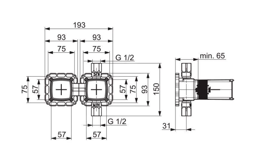 - inbouwdiepte: 65-90 mm