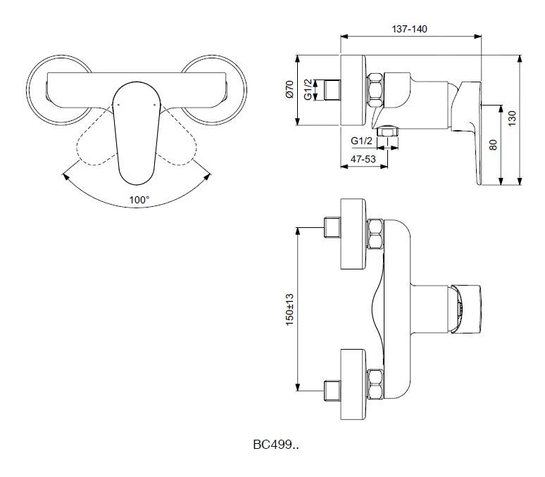- metalen bedieningshendel met warm-/koudwateraanduiding