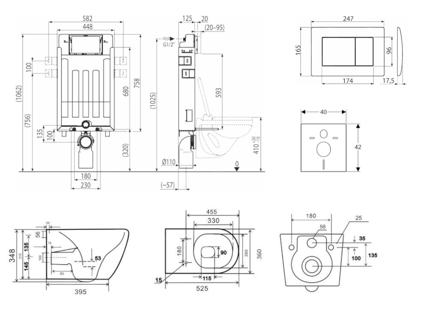 Set voorwandinstallatie, toilet met toiletbril softclose Gaia en bedieningspaneel Gemini III