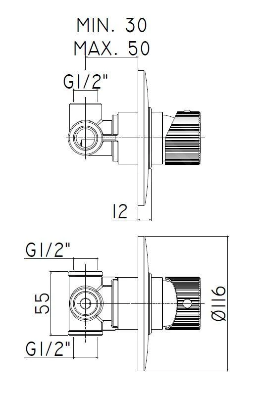 - afdekrozet voor aan wand Ø 116 mm