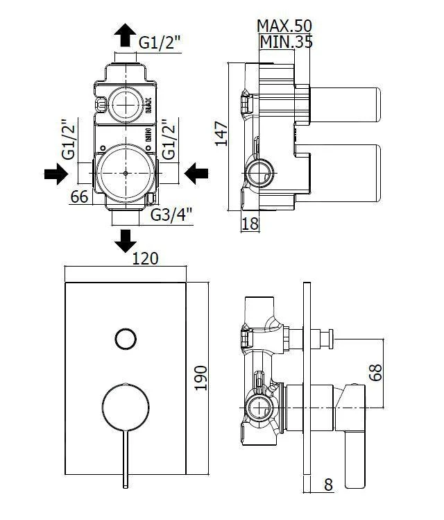 - G 1/2″ aansluiting
