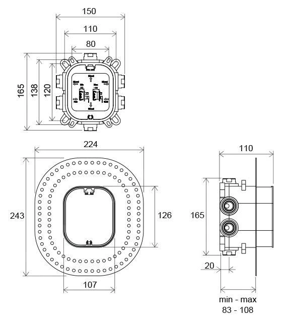 - hoge flexibiliteit van montage tot een diepte van 83 – 108 mm