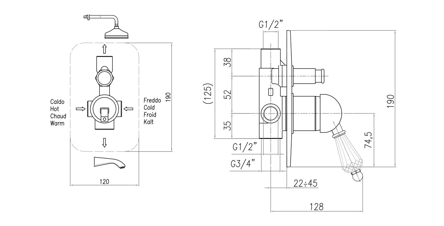 Kirké Crystal eengreeps inbouw douchekraan, 2 uitgangen