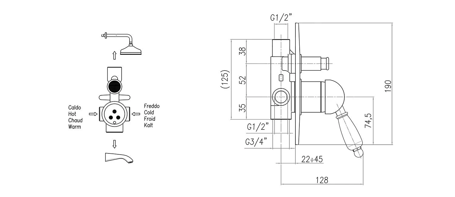 - omstelling hand-/hoofddouche, of hoofddouche en wanddouches