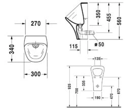 Duravit D-Code – Urinoir, Bovenste Waterinlaat, Rimless, Met HygieneGlaze, Alpine Wit 0828302000